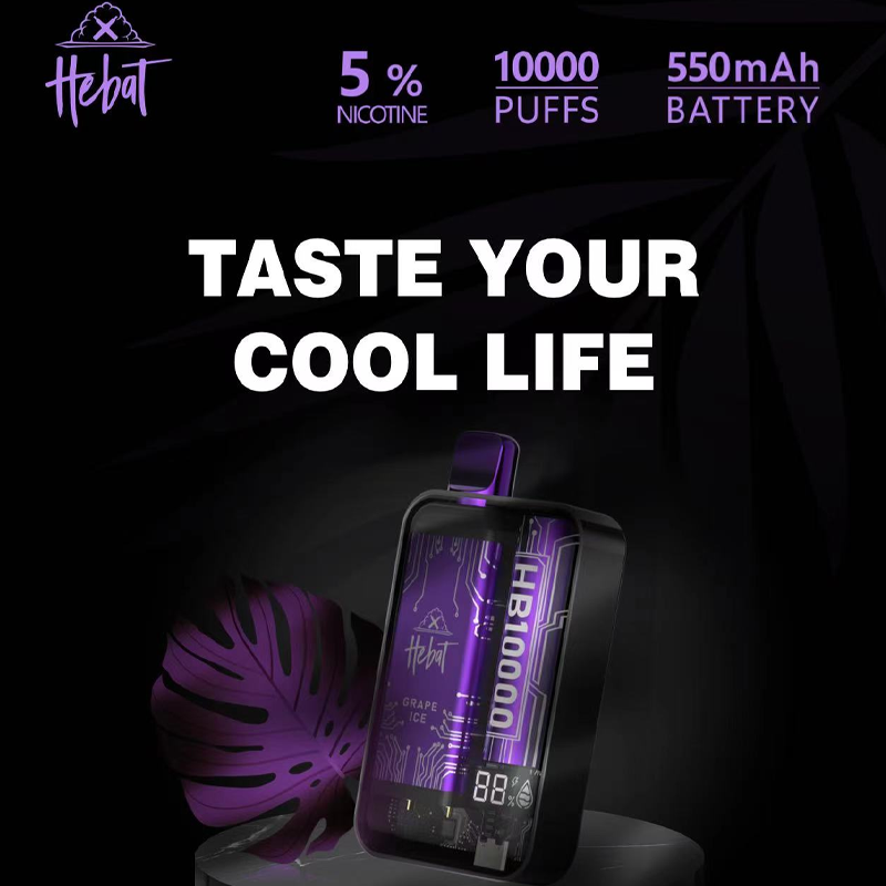 HEBAT 喜貝 10000口 一次性電子菸 ,搭載 20mL 煙油 + 650mAh 可充電電池,支援 Type-C 快充,5% 尼古丁濃度,帶來醇厚擊喉感與持久續航。共推出 16 種人氣口味,涵蓋水果、清涼、飲料與經典系列,滿足不同偏好。