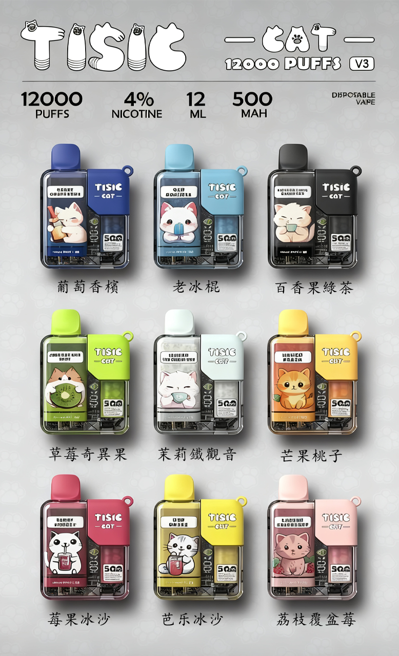 TISIC 貓咪電子菸 12000口|多口味・一次性設計